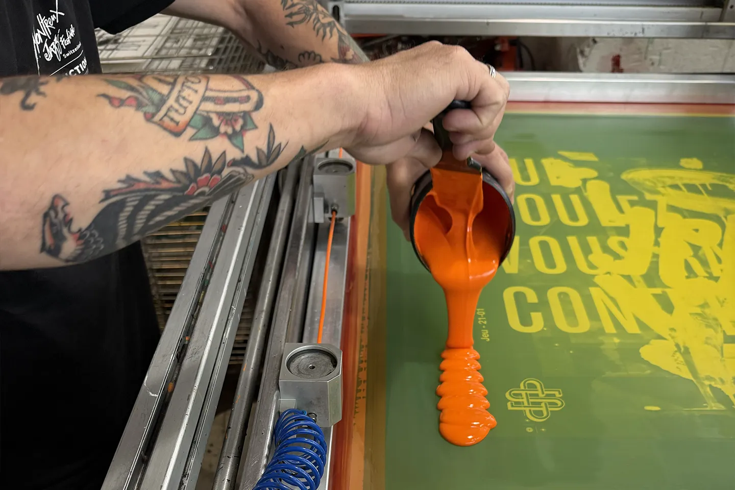 La sérigraphie est le cœur de l’atelier. Nous l’abordons comme une technique de l’estampe, mais aussi comme un espace de recherche, de mise au point et de collaboration, ou chaque projet se construit au plus près de l’intention de l’artiste.